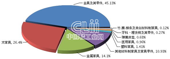 图4 2014年1~8月家具行业主要商品累计出口值占比情况