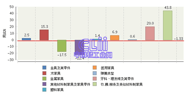 图5 2014年1~8月家具行业主要商品累计出口值增速情况