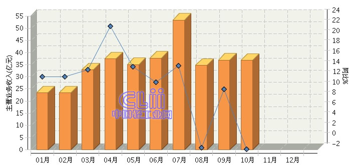 2014年1月~10月,全国文具制造行业累计完成主营业务收入351.81亿元,同比增长10.20%。其中:10月份完成主营业务收入36.76亿元,与九月份完成主营业务收入36.92亿元相比下降了1.95%。