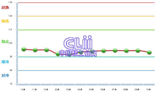 2014年10月中轻家具景气指数为93.30