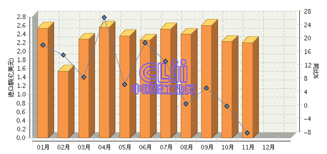 根据海关总署发布数据:2014年1~11月,全国家具行业累计完成进口额25.50亿美元,同比增长10.27%。其中:11月份家具进口额同比下降6.55%。