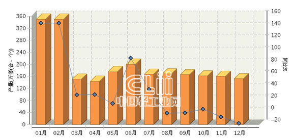 2014年,湖北灯具及照明装置累计产量1840.89万套,同比增长-2.00%。其中: 12月份完成产量152万套(台、个),同比增长-18.4%。