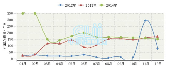 2014年湖北灯具及照明装置行业连续三年月度产量对比