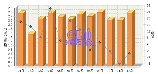 根据海关总署发布数据:2014年度,全国家具行业累计完成进口额28.07亿美元,同比增长9.25%。其中:12月份家具进口额同比增长0.03%。