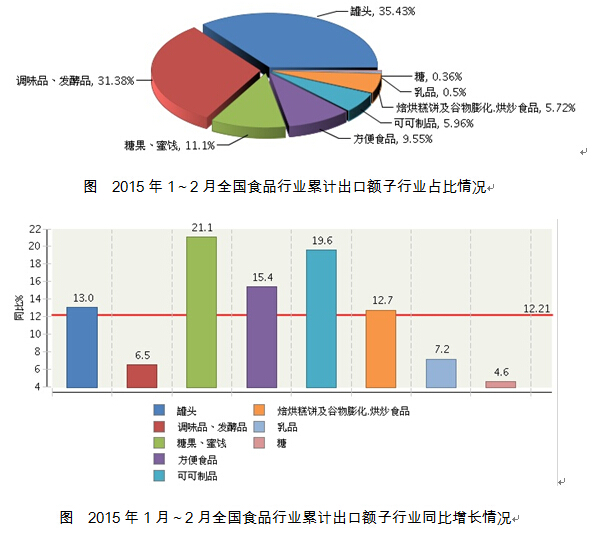 - 2015年1~2月全国食品行业出口情况2015/5/21 10:32:09