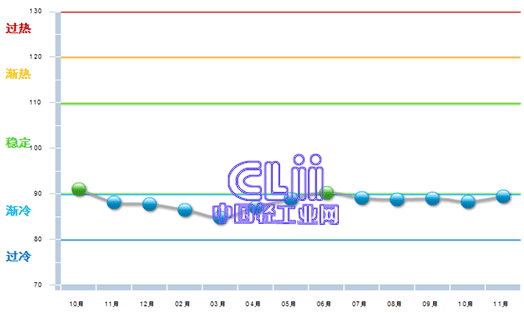 图1 2013年10月~2014年11月家具行业利润景气指数变化态势