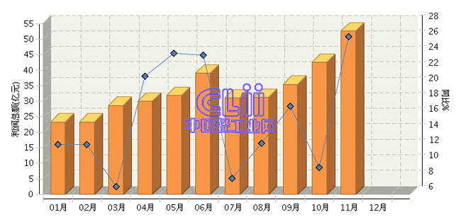 图2 2014年1~11月家具行业规模以上企业月度利润总额及增速