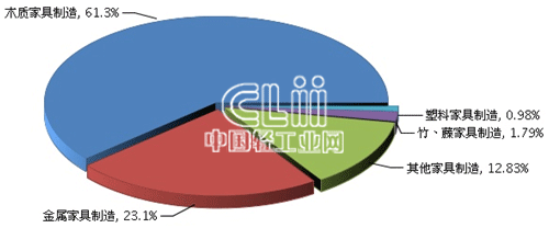 图4 2014年1~11月家具子行业规模以上企业累计利润总额占比情况