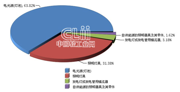 从子行业分布情况看,电光源(灯泡)完成累计进口额2.35亿美元(占63.82%),同比增长1.49%;照明灯具完成累计进口额1.16亿美元(占31.38%),同比增长6.71%;放电灯或放电管用镇流器完成累计进口额0.12亿美元(占3.18%),同比增长-37.06%;自供能源的照明器具及其零件完成累计进口额0.06亿美元(占1.62%),同比增长-28.52%。
