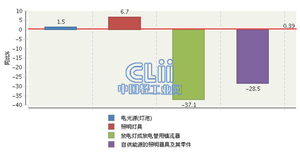 2015年1月~3月全国照明行业累计进口额子行业同比增长情况