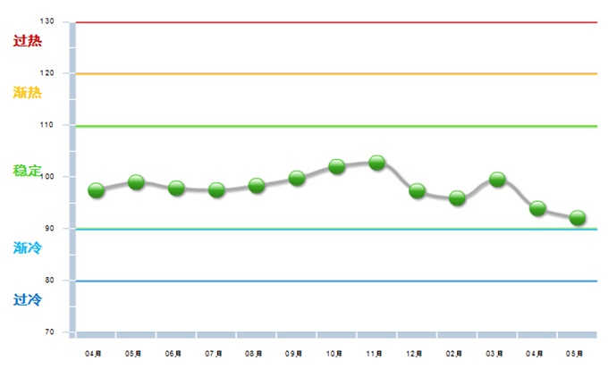 图1 2014.4—2015.5自行车行业利润景气指数变化态势
