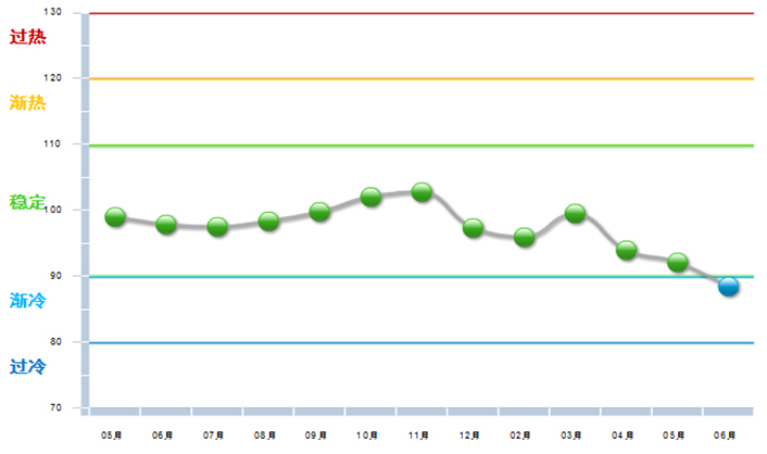 和中国自行车协会联合发布中轻自行车行业景气指数,2015年6月,自行车行业利润景气指数88.46,比2015年5月份下降3.62。