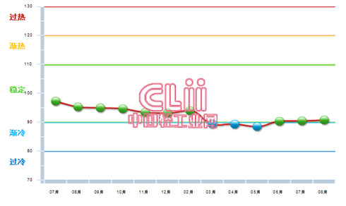 2015年8月中轻照明景气指数在持续6月份的稳定态势,继续在稳定区间运行。