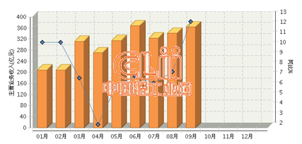 图 2015年1~9月全国陶瓷行业月度主营业务收入及同比