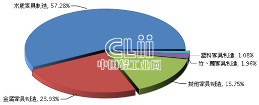 图4 2015年1~4月家具子行业规模以上企业累计利润总额占比情况