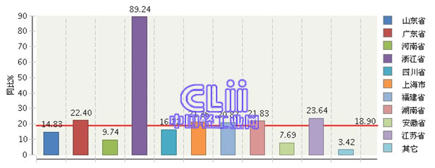 同期,上述10个地区中,浙江的累计利润总额增速(下称“累计增速”)高达89.24%;江苏、广东、湖南、上海及福建5个地区的累计增速均超过了20%;其他4个地区的累计增速低于全国家具行业的平均水平,其中四川和山东的累计增速保持了10%以上的两位数增长(图7)。