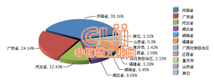- 2015年上半年全国卫生陶瓷产量地区分布2015/9/14 11:40:34