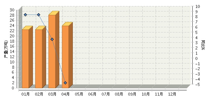 - 2016年1~4月我国乳制品产量累计同比2016/5/24 11:08:57