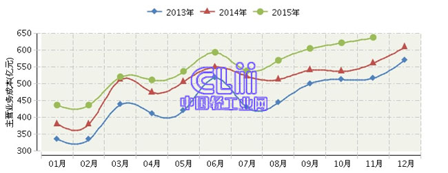 2015年1~11月全国家具行业主营业务成本累计同比增长9.65%