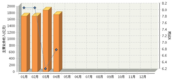 根据国家统计局公布数据,2016年1~4月,全国食品行业累计完成主营业务收入同比增长7.33%。其中:1月份完成主营业务收入同比增长8.15%;2月份同比增长8.15%;3月份同比增长6.29%;4月份同比增长6.87%。月度数据走势及同比增长情况如下图所示。
