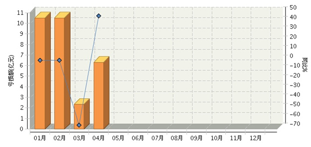 根据国家统计局公布数据,2016年1~4月,全国食品行业累计亏损额同比增长-7.44%。其中:1月份亏损额同比增长0.74%;2月份亏损额同比增长0.74%;3月份亏损额同比增长-66.07%;4月份亏损额同比增长46.97%。月度数据走势及同比增长情况如下图所示。