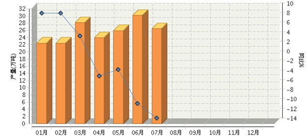 2016年1~7月全国糖果行业产量月度走势