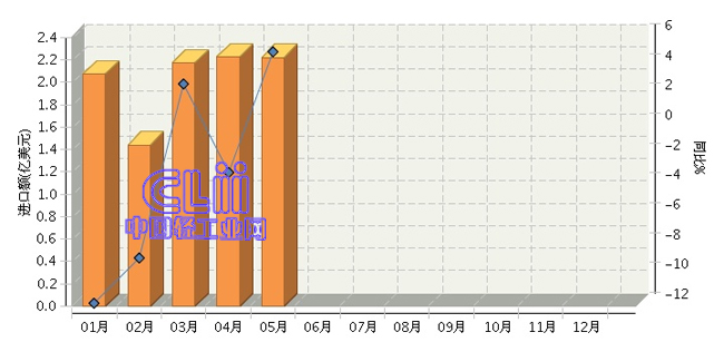 2016年1~5月我国进口家具累计同比下降3.04%