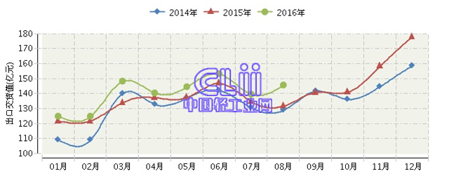 - 2016年1~8月全国家具行业出口交货值2017/3/21 14:38:47