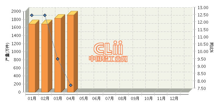 - 2017年1~4月全国卫生陶瓷产量10.2017/6/16 15:51:24
