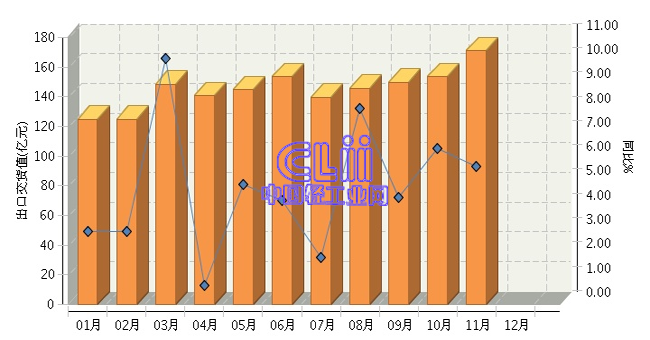 根据国家统计局公布数据:2016年1~11月,全国家具行业的累计出口交货值为1608.83亿元,同比增长4.58%。其中:11月份出口交货值同比增长5.67%。