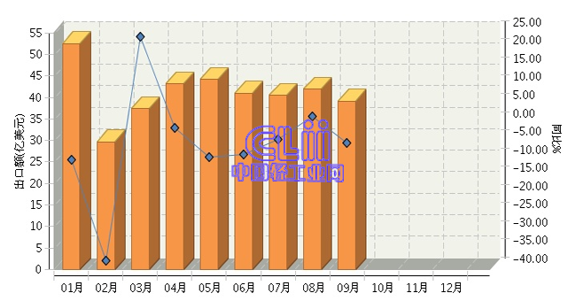 2016年全国家具行业月度出口额及同比