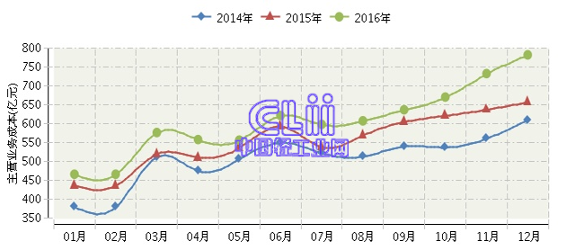 全国家具行业连续三年月度主营业务成本对比