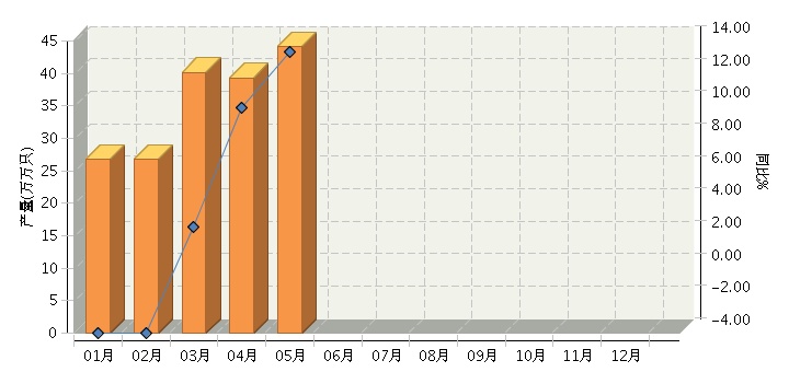 根据国家统计局公布数据,2017年1~5月,全国原电池及原电池组(折R20标准只)行业累计完成产量同比增长3.55%。其中:5月份完成产量同比增长13.32%。2017年全国原电池及原电池组行业月度产量及同比如下图所示。