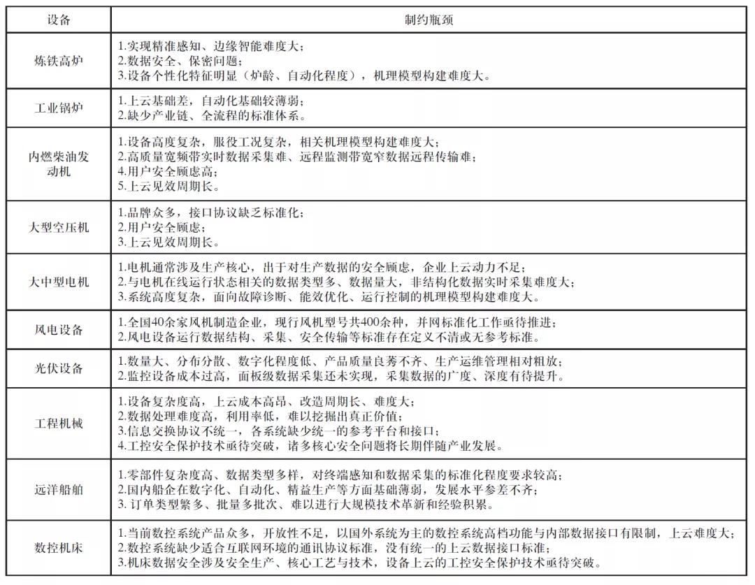 表2 制约工业设备上云的瓶颈