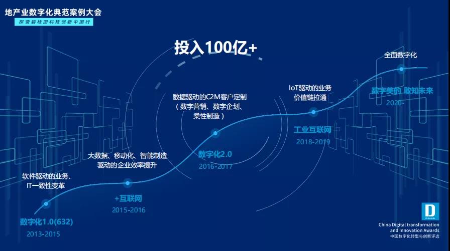 美的集团的经营业绩在全球范围内表现卓越,源于集团在数字化转型方面坚定的大量费用投入。从数字化1.0到数字化2.0,再到今天的全面智能化、全面数字化,美的集团8年累计投入100亿+。2012年,集团战略聚焦在供给侧结构性改革,实现产品领先、效率驱动和全球经营的目标。2020年,美的集团聚焦要素市场化改革,提出全面数字化和全面智能化,重构整个产业链。数字化体现在硬件、软件、内容和服务上面,对家电行业来说就是以用户为中心,从全方位的生活体验到产品。