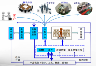 (1)基于设备运维的服务。很多装备制造企业不仅卖产品,而且卖服务。一方面是客户为中心之理念所致,另一方面也是企业价值链的延伸。例如,陕鼓动力形成了基于全生命周期运行与维护信息驱动的复杂动力装备可持续改进的制造服务及系统保障体系,如图15所示。值得注意的是,通过对设备运行数据的监测、诊断,设备的状态、故障及服务信息可以反馈回来,以供产品改造升级之用。