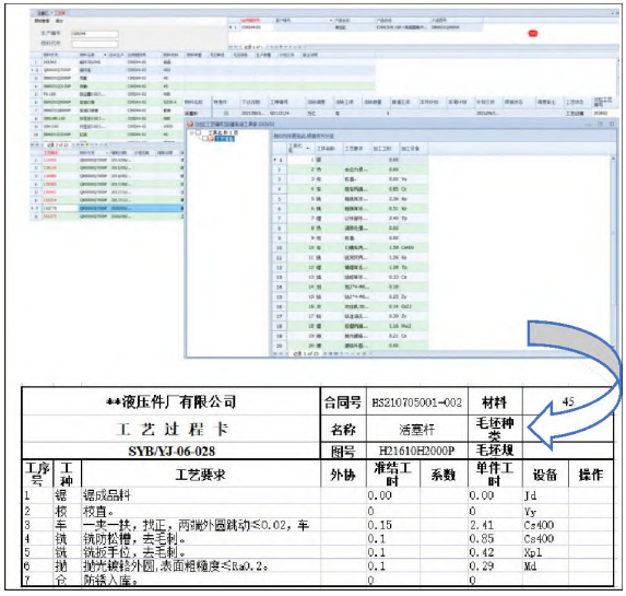 (3)生产工序和零件工艺种类庞杂,纸质工艺过程卡的流转困难且文档查找困难。工艺流程主要由机加工工序构成:割、车、铣、钻、镗、热处理等共十几道工序。而且产品结构和制作工艺通常在收到客户订单后才能被确定,这种方式对生产的柔性要求大大增加。