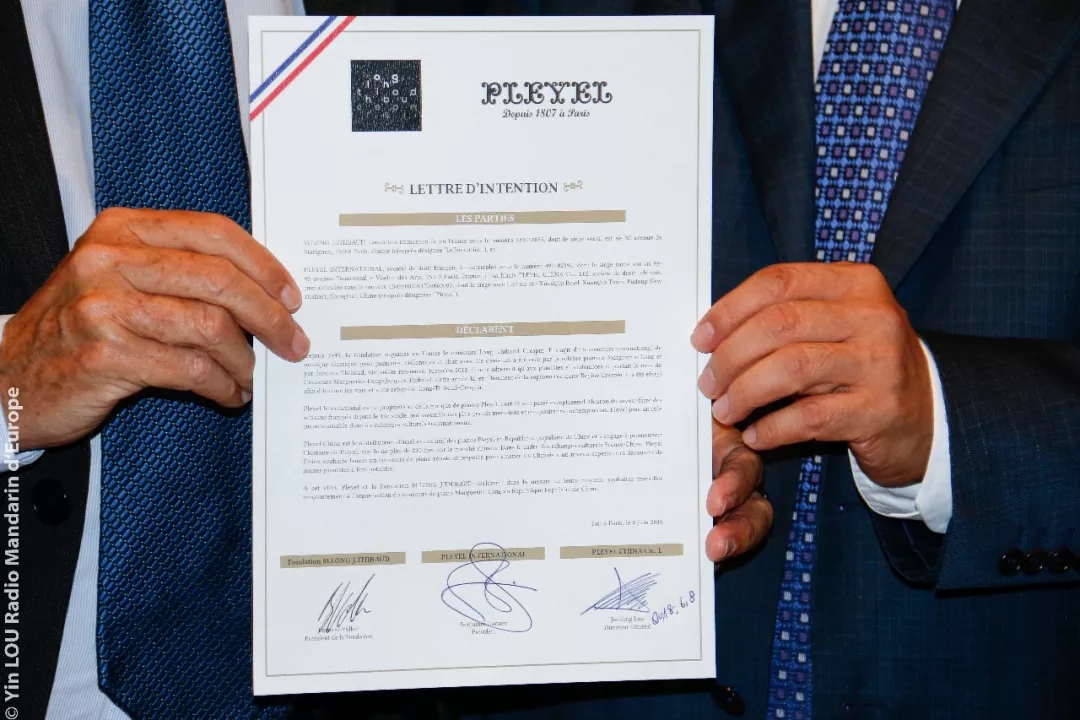 (欧洲华语广播电台·记者·楼寅)2018年6月8日,法国ALGAM董事长、普雷耶国际公司本杰明·加尼叶先生(Benjamin Garnier)、普雷耶(中国)公司罗建峰先生及隆·提博(玛格丽特·隆)国际音乐比赛(Concours Long-Thibaud-Crespin)创始人之一贝尔纳德·福尔克先生(Bernard Volker)于巴黎布里斯多酒店共同签署了多方合作协议,拟定于2020共同在中国举办年隆·提博(玛格丽特·隆)国际音乐比赛。法国中国乐器协会理事长王世成先生、中国旅法钢琴家黎耘女士、中法文化艺术交流协会骨干成员等嘉宾受邀出席签约仪式。