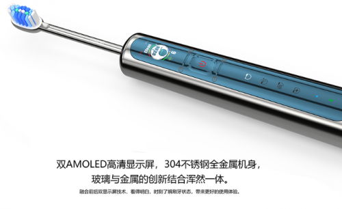在这个“万物看颜值”的时代,电动牙刷的外观设计也很重要。imask电动牙刷外观设计超前,在设计大师的匠心雕琢下,它采用了钛晶灰304不锈钢金属机身融合AMOLED高清显示屏,圆润细腻的线条设计,颇具高级感与科技感,优雅气质十足。