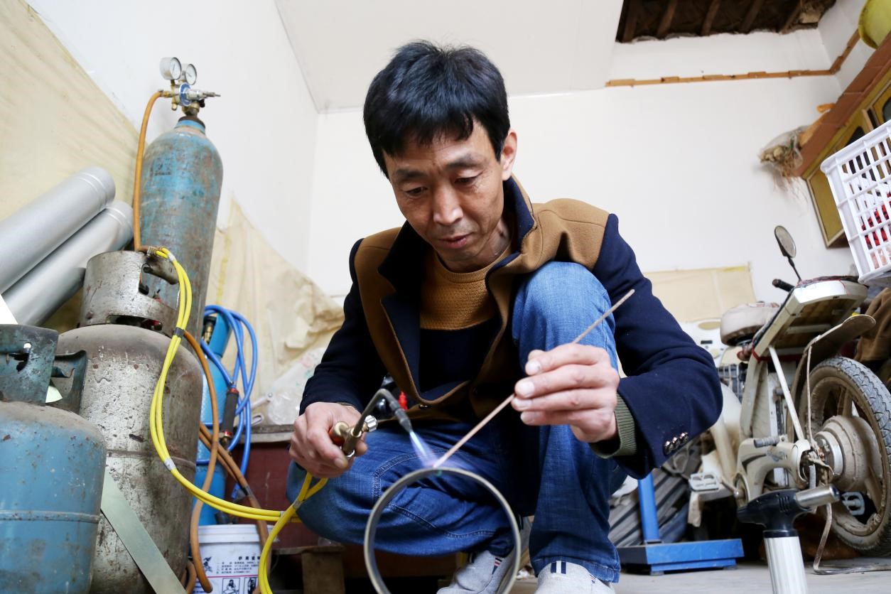 4月23日,肖爱国正对着一件铜墨盒半成品进行细细打磨。“这是我最新设计制作的多边形铜墨盒作品,眼看就要大功告成了。”肖爱国的话语里难掩喜悦之情。从门外汉到河北肃宁当地铜墨盒制作领域的翘楚,肖爱国付出了多少辛劳与汗水,也许只有他自己才能体会。
