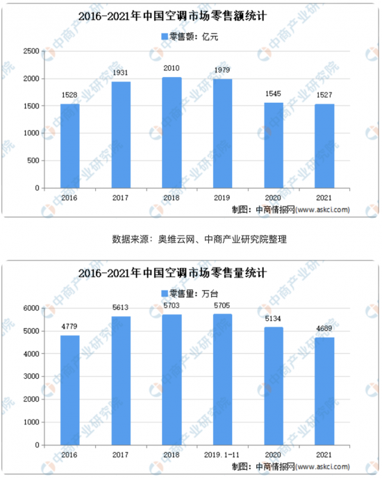 根据奥维云网公布的相关数据显示,截至22W10,冰箱、冰柜、洗衣机、干衣机、空调、彩电的线下均价全部上涨;线上则只有洗衣机、干衣机和空调保持涨势。其中尤为明显的就是空调行业,2021年零售规模同比下降8.7%的情况下零售额微降1.2%。