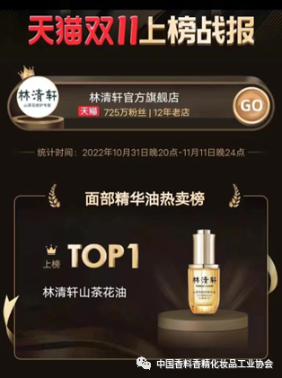 深耕化妆品行业多年,林清轩的系列产品深受消费者好评,此次山茶花修护精华油在天猫双十一活动中获得同类产品销量第一的战绩,更充分说明了市场对于产品品质的认可。正是凭借对用户需求的洞察和产品技术的创新突破,不断探寻让肌肤发光的秘密,让林清轩实现销量突围。如今,林清轩已经在高端护肤品领域站稳脚跟,成为新一代国货的代表性品牌。未来,林清轩将持续为中国的消费者带来更好的护肤产品。