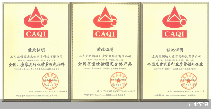 光明园迪在第21个年头初,拿到了“全国儿童家具行业质量领先品牌”、“全国儿童家具行业质量领先企业”、“全国质量检验稳定合格产品”三份荣誉,值得一提的是,此次,光明园迪的“质量荣誉”主要从设计、创新、智能化的细节入手。
