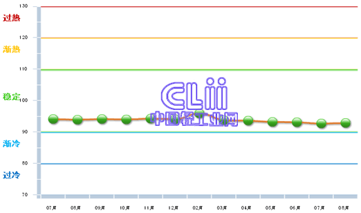 图1 2012年7月~2013年8月家具行业主营业务收入景气指数变化态势