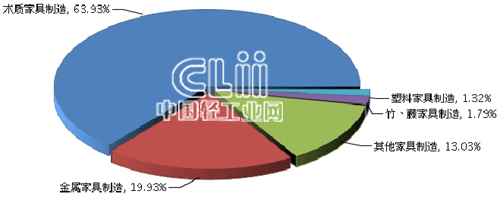 图4 2013年1~10月家具子行业规模以上企业累计主营业务收入占比情况