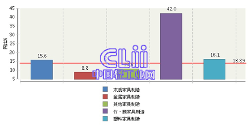 图5 2013年1~10月家具子行业规模以上企业累计主营业务收入增速情况