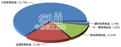 图4 2013年1~11月家具子行业规模以上企业累计主营业务收入占比情况