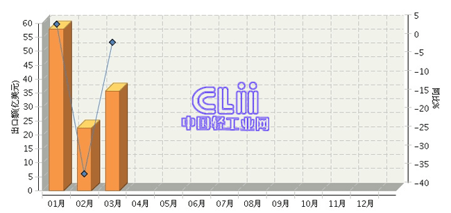 从月度出口值的走势来看,1月以月度新高开局,增速仅为4.73%,比2013年同月大幅下降了49.47个百分点;2月出口回落,比1月减少了35.48亿美元,增速为负,是近年来负增长最高的一个月;3月出口反弹,与2013年同月基本持平(图2和图3)。