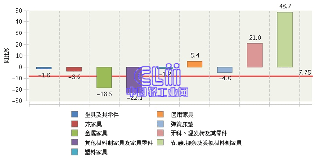 图5 2014年1~3月家具行业主要商品累计出口值增速情况