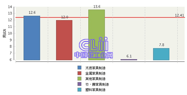 图5 2014年1~4月家具子行业规模以上企业累计主营业务收入增速情况